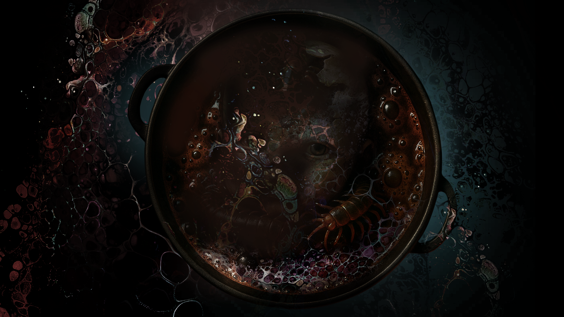 We used multiple passes, building layer upon layer of liquids and textures, each affecting the next.